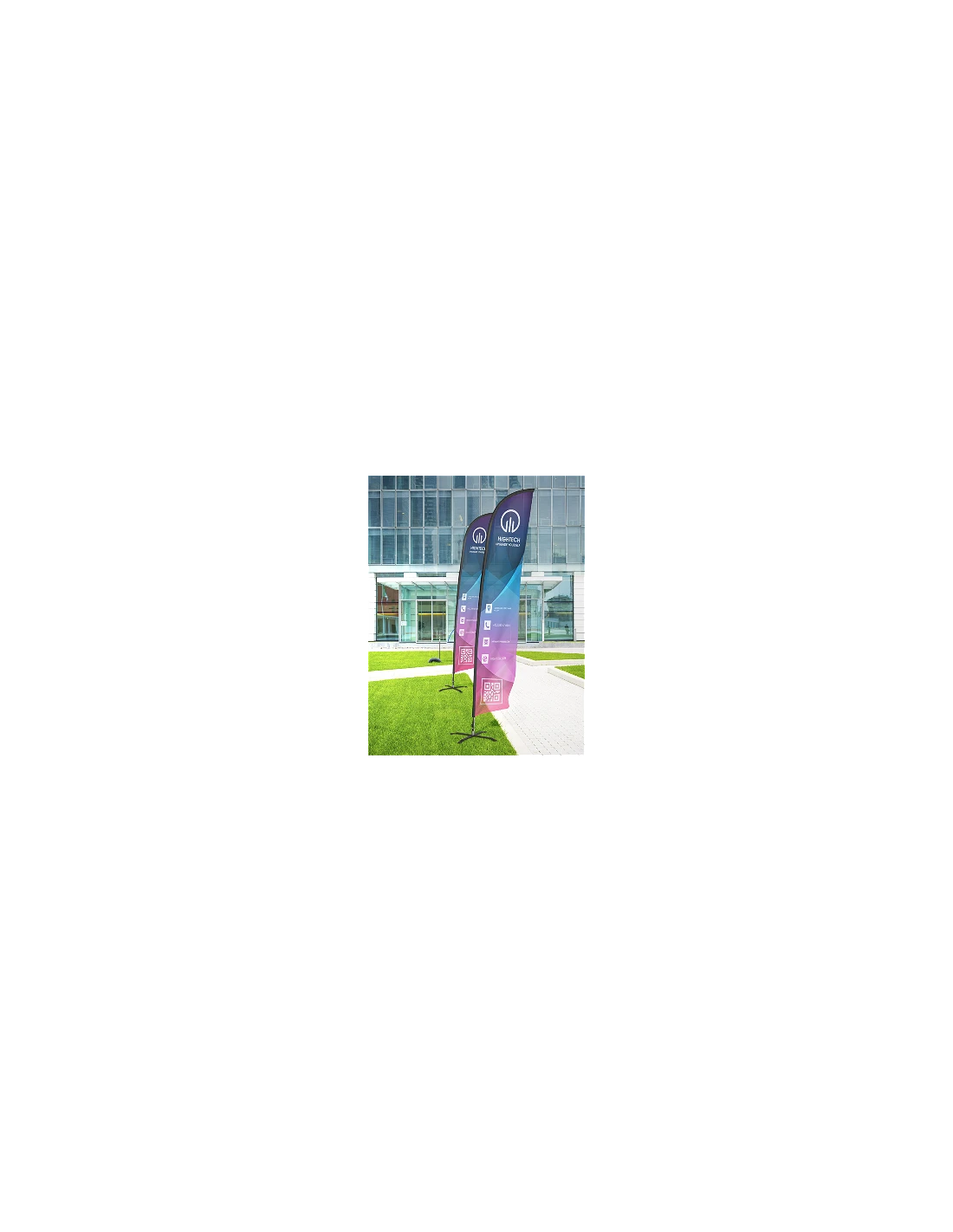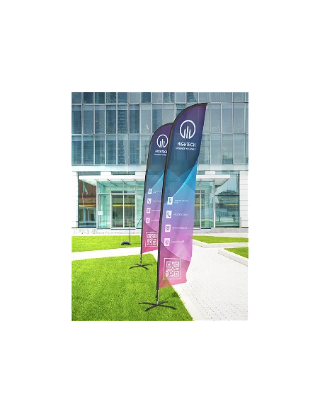 El conjunto de flag banner Vela incluye una gráfica en tejido Poliéster 110g, una estructura metalizada y cualquiera de los soportes disponibles. Es perfecta como indicadores en eventos culturales, congresos o convenciones, también para ferias y celebraciones especiales.