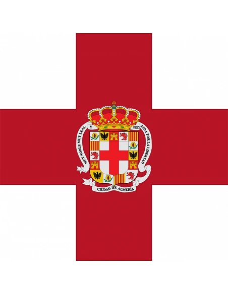 Institutional flag of Almería, made of 100% polyester fabric of 110g, perfect and resistant for both outdoor and indoor use.