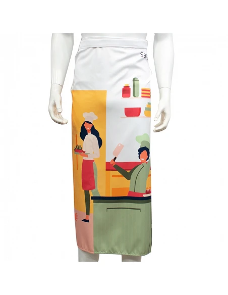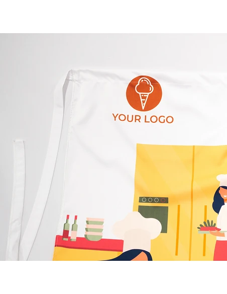 Stand out in your business with full-color personalized aprons for your restaurant, bar, or store. Design without limits thanks to the full-color printing and sublimation of the garments, creating unique and different designs.