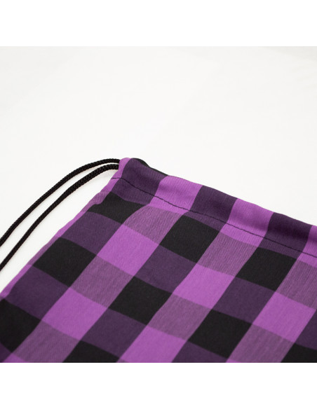 Drawstring backpacks in cachirulo print, perfect for patron saint festivals like the Pilar festivities in Zaragoza. The drawstring backpack is ideal, with a size of 35x40cm, suitable for both children and adults. One of the best features of this product is that it can be personalized by embroidering the shield of the peña or group, or even with the name of the owner.