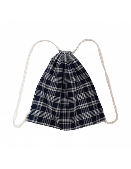 The Blue Herb Checkered fabric backpack is a perfect festive accessory for carrying our belongings. The print is ideal for parties such as the Fallas or the Virgen Blanca. Additionally, the fabric can include the shield of the falla or festive group to which you belong. Its finish is with strings to wear it hanging on the back and is suitable for both adults and children.