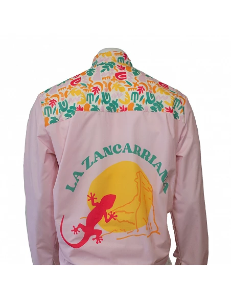 The Karnón Peñista blouse is made with a 100% polyester 108 g Graphen fabric. The fabric used for the recycled sublimated blouse is made of elastic fiber with 37% plant-based material. It contains 8% graphene and provides the garment with properties such as a cool touch, anti-odor, UPF sun protection, antistatic, antiviral, and moisture control. It also has resistance to washing at 40º.