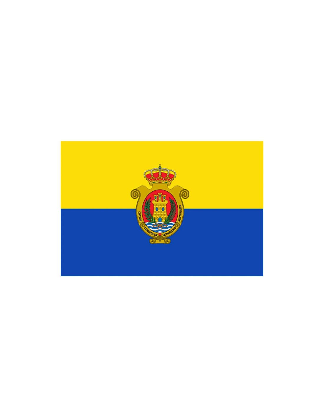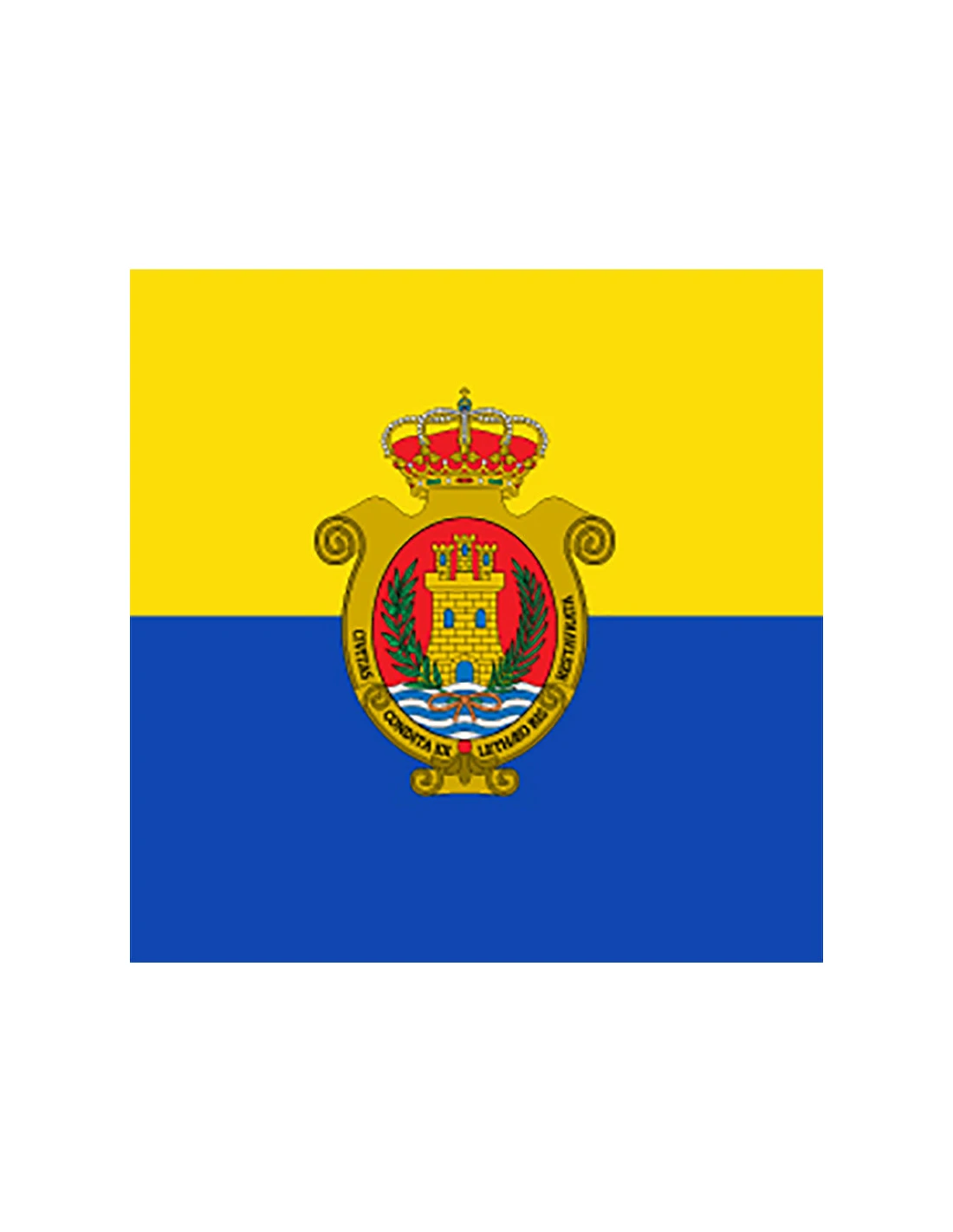 Institutional flag of the city of Algeciras perfect for waving on the facades of City Hall, institutional buildings, football fields, or schools. Its composition is based on a 100% polyester fabric of 110gr that provides resistance, both to cold and heat without losing properties, making it ideal for outdoors or indoors.