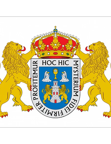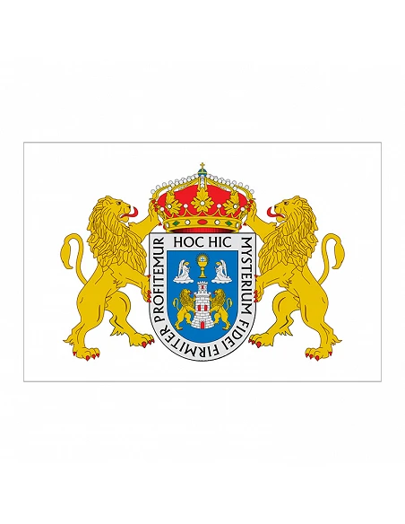 La bandera institucional de la ciudad de Lugo está compuesta en un tejido 100% poliéster de 110g con acabado en anillas y refuerzo, por eso, es apta tanto en interiores como exteriores, porque es resistente al frío, al agua y al calor. Está disponible en las medidas de 150x100cm y 210x140cm, pero tienes la opición de personalizar el tamaño como tu desee. ¡Consulta presupuesto!