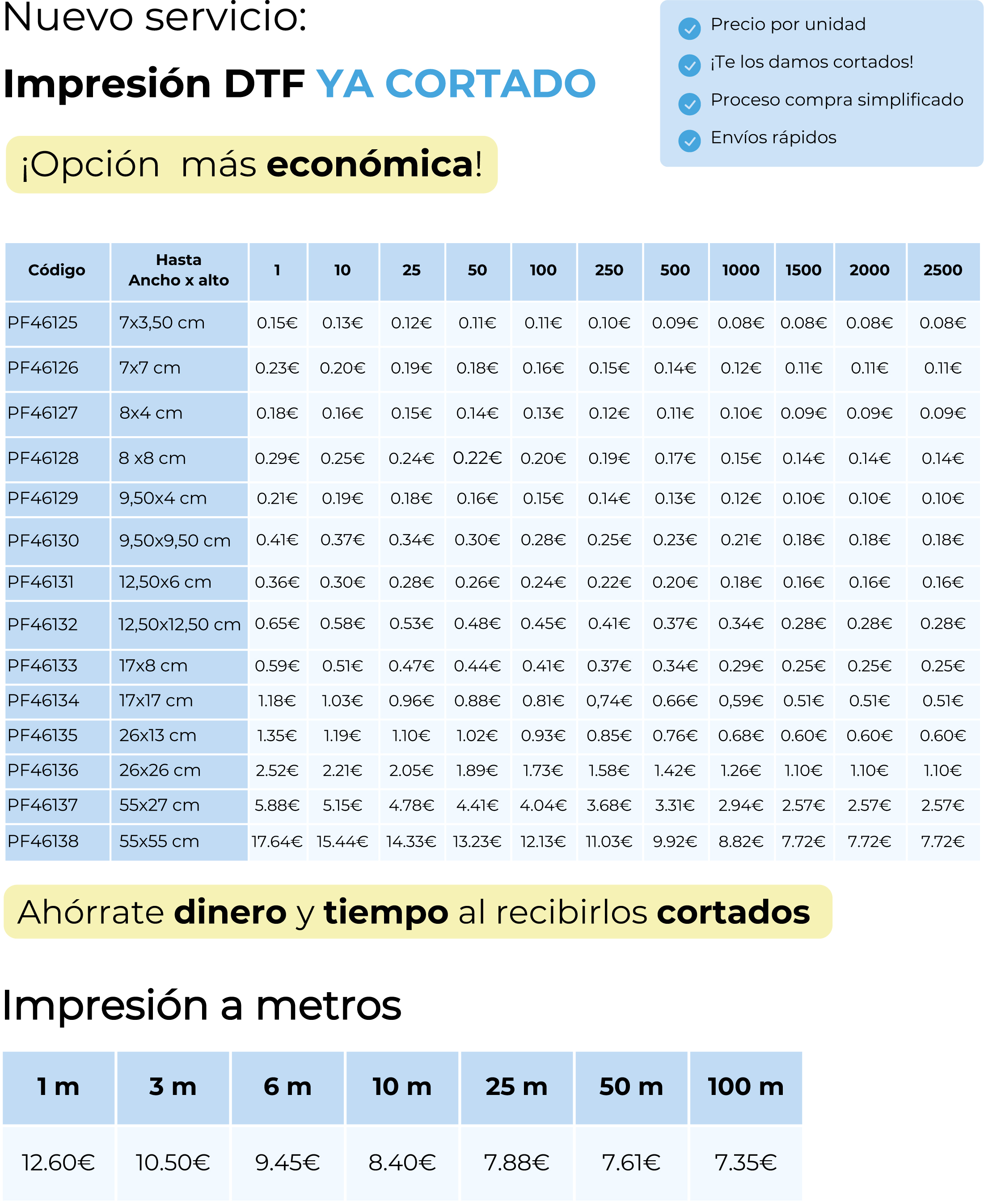 Alta calidad en DTF textil para personalizar cualquier tipo de prenda de algodón, lycra, poliéster etc. Ideal para pequeñas cantidades y retirada en caliente