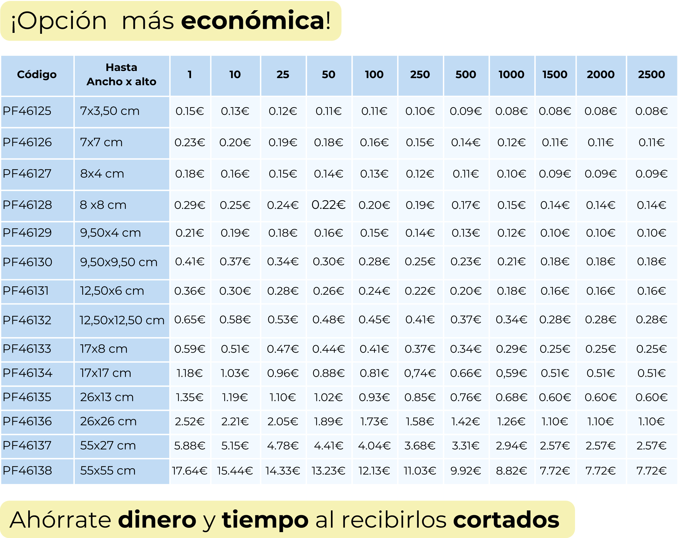 Olvídate de calcular los metros que necesitas. Hemos simplificado la compra de DTF.