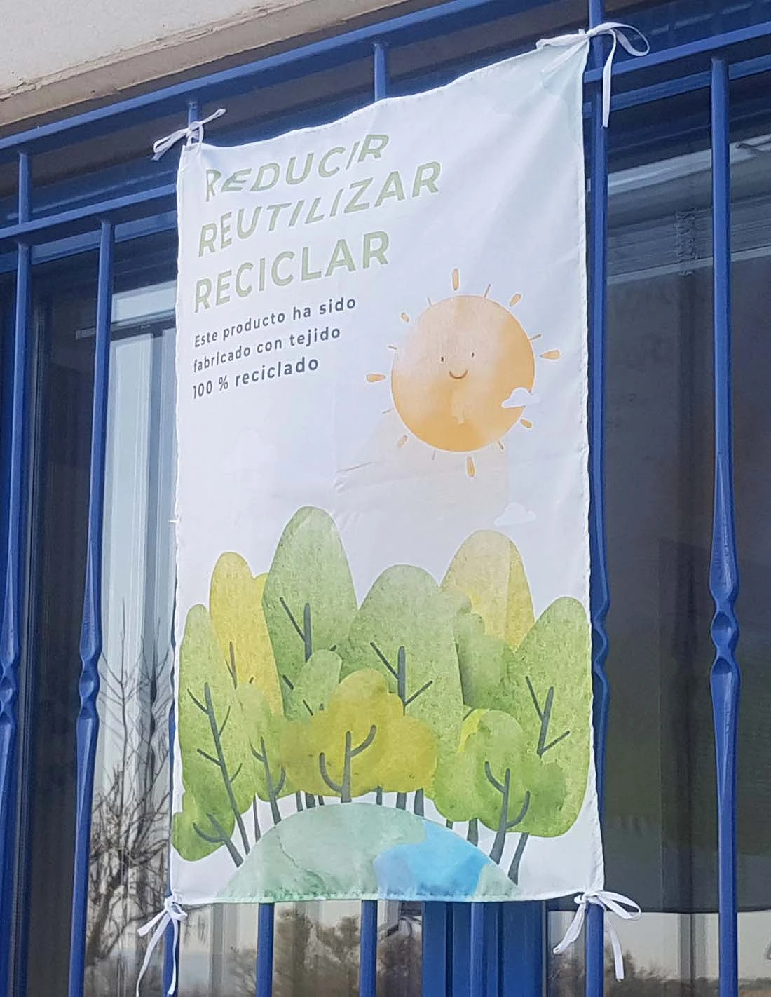Le drapeau de balcon personnalisé recyclé est certifié GRS (Global Recycled Standard), garantissant qu'il s'agit d'un produit fabriqué à partir de tissu 100% recyclé et recyclable. Disponible en différentes tailles, et le meilleur de tout est que le design est 100% personnalisé.
