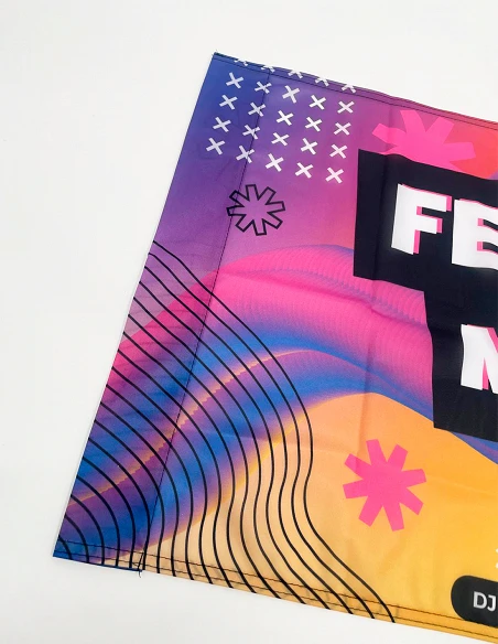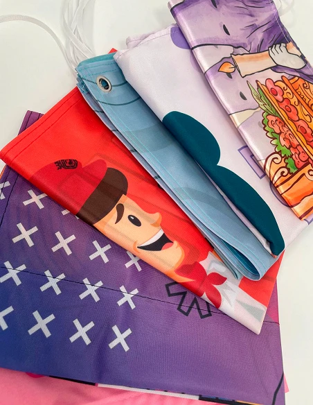 Muestrario de banderas y colgaduras – Elige tejidos y acabados con total seguridad