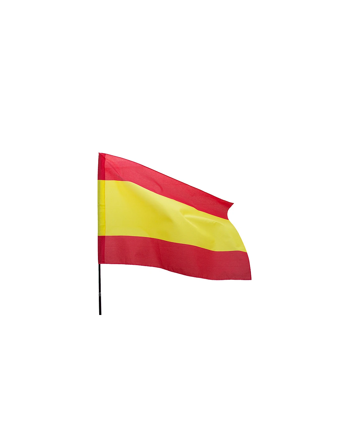 Drapeau d'Espagne en tissu popeline aux couleurs de l'Espagne sans blason. Produit d'opportunité avec des dimensions uniques de 75x115cm et 35x60cm, 80x80cm, finition avec corde, bâton ou surjet selon la taille.