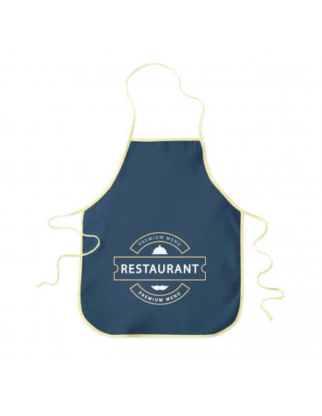 La composizione del grembiule è in Streck 170 gr (100% poliestere). Il grembiule è rifinito con un bordo intorno che consente di regolarlo in vita.