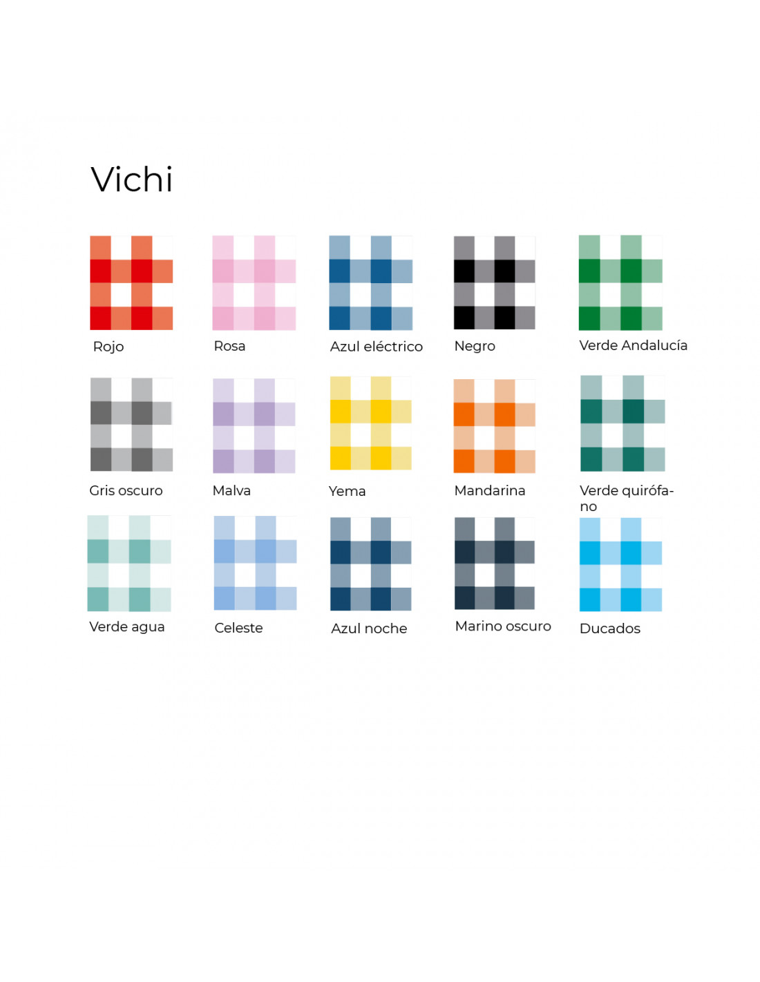 Fazzoletto classico in tessuto di poliestere, la sua composizione del 70% poliestere e 30% cotone lo rendono un pezzo resistente e durevole. La stampa Vichy è una delle più tradizionali che non passa mai di moda, pertanto è disponibile in una vasta gamma di colori da abbinare ai classici quadretti bianchi di questo tessuto. Questo prodotto presenta sempre una finitura a punto che consente di rinforzare la chiusura del prodotto.