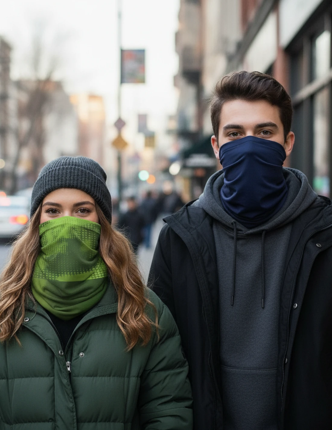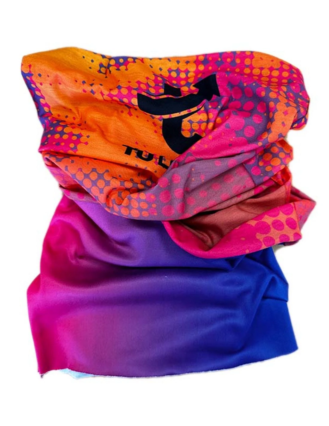 Este muestrario ofrece muestras de 1 braga de cuello lisa sublimada y otra braga de cuello con parte polar