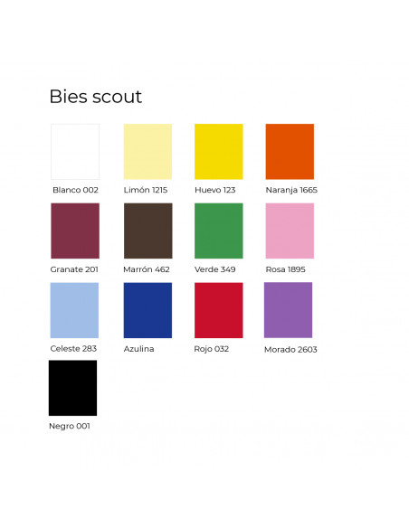 Opciones personalizables: Escoge el color del pañuelo y del bies, con una amplia paleta de colores para personalizarlo según los colores de tu grupo scout.