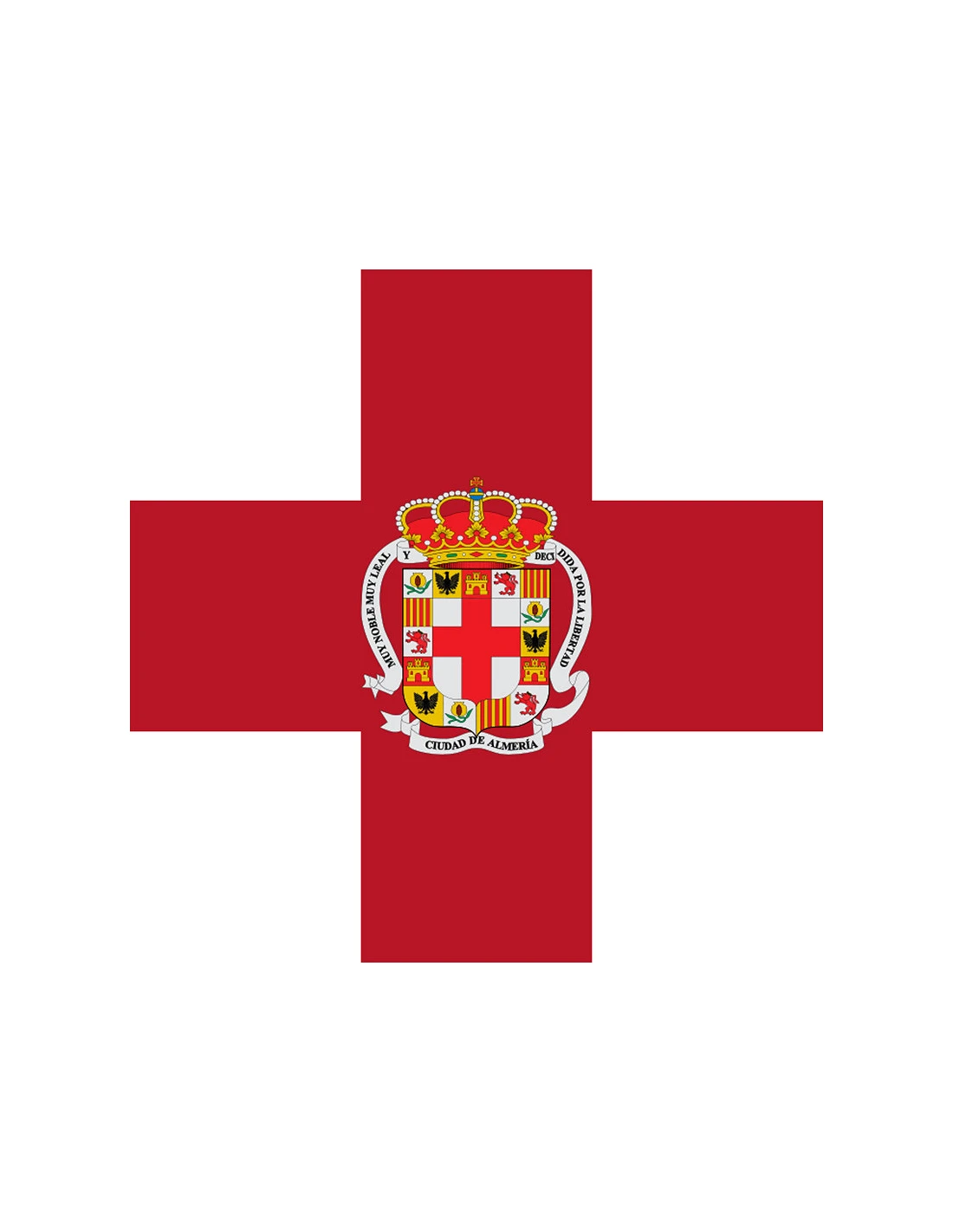Bandeira institucional de Almería, com uma composição de tecido 100% poliéster de 110gr é perfeita e resistente tanto para exteriores como interiores.