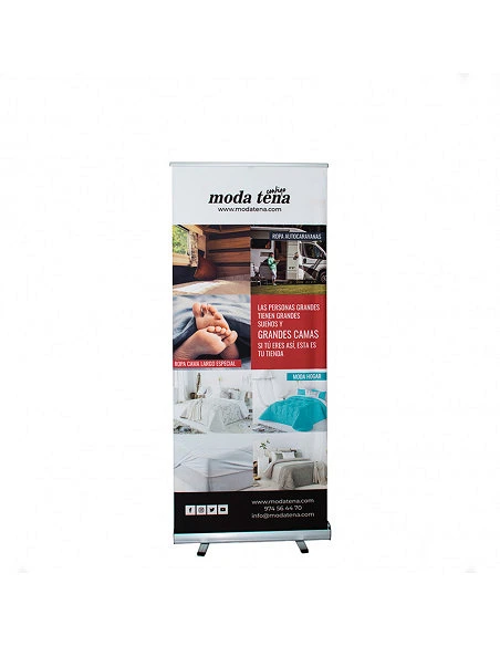 El roll up publicitario es uno de los soporte más famosos para eventos. Son autoenrollables e ideales para dar a conocer tu marca, tus productos y tu empresa en ferias, o para información y timings sobre congresos, celebraciones o eventos. Además, cuenta con un acabado fullprint que le permite que la personalización de la pieza sea del 100%, por eso es perfecto para cualquier ocasión.